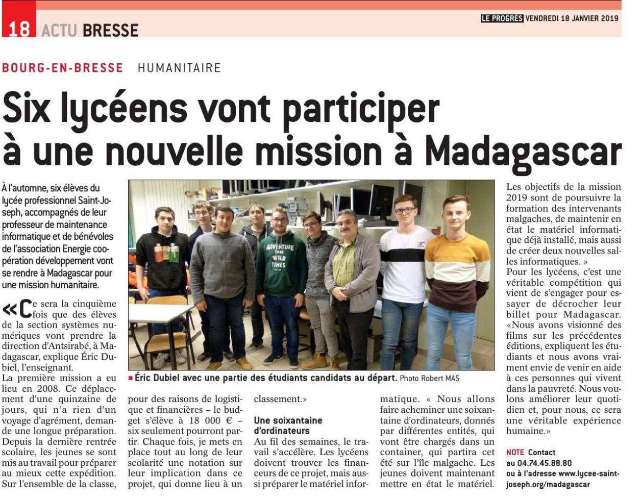 Le Progrès, 18 Janvier 2019
